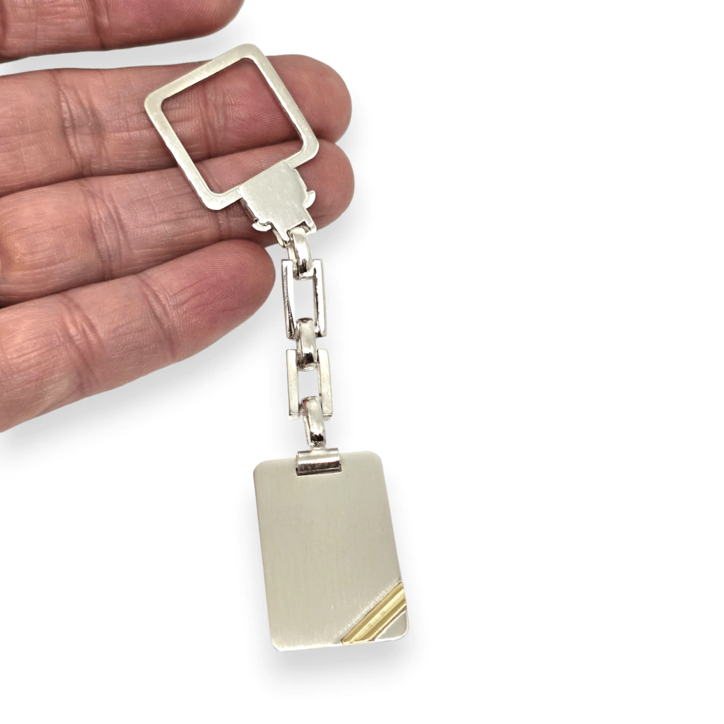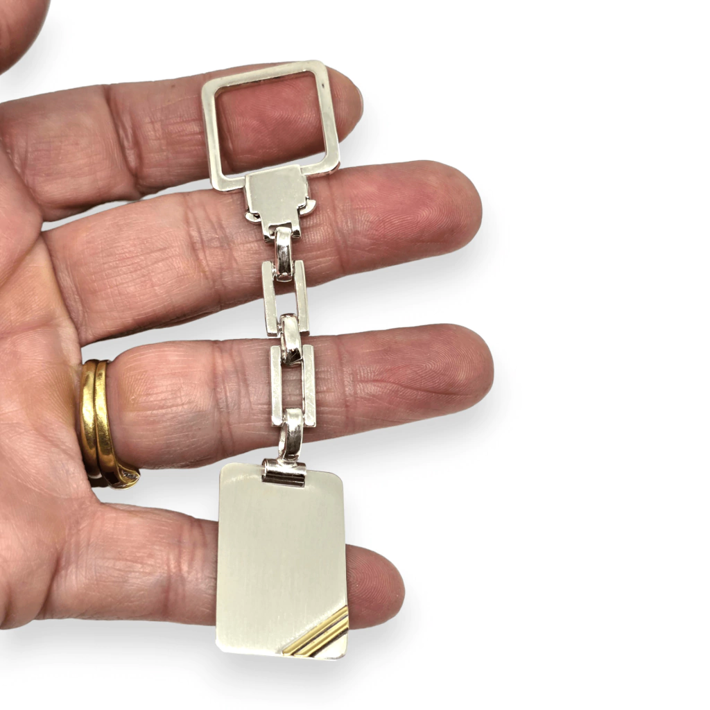 LLAVERO PLATA Y ORO HOMBRE con DETALLE DIAGONAL ORO