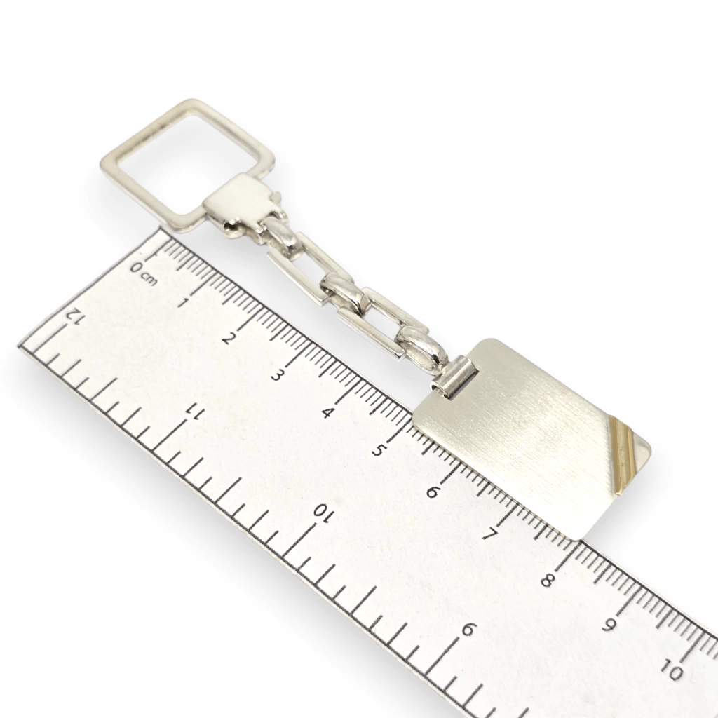 Este elegante llavero es el accesorio perfecto para el hombre moderno y sofisticado. Fabricado en plata de alta calidad, destaca por su diseño robusto y masculino, complementado con un delicado detalle diagonal en oro que aporta un toque de distinción y lujo. Su estructura firme y resistente asegura que tus llaves estén siempre seguras, mientras que su estilo refinado añade un toque de elegancia a tu día a día. Ideal para uso personal o como un regalo significativo para esa persona especial, este llavero combina funcionalidad y estilo en una pieza única.