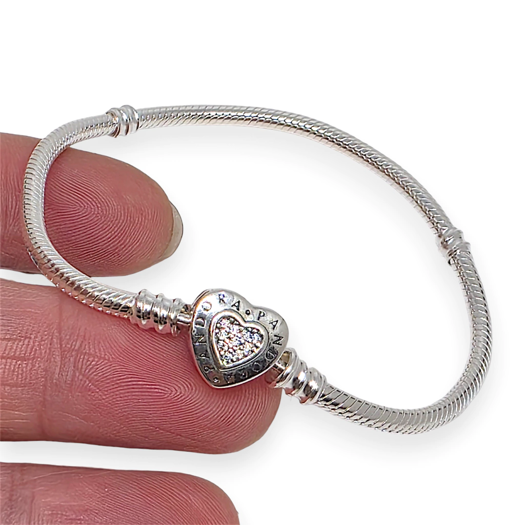 PULSERA PLATA 925 PANDORA PARA DIJES CHARM CORAZON con Cubic -para dijes Pasantes-